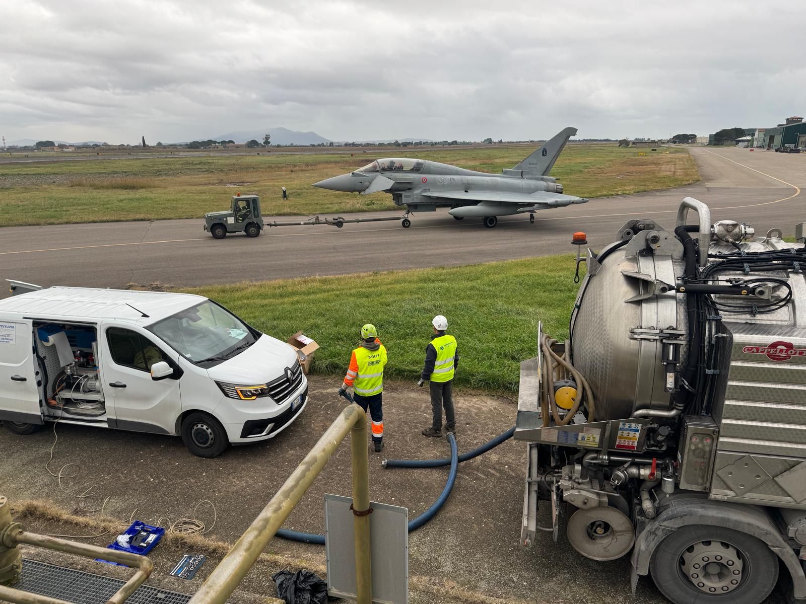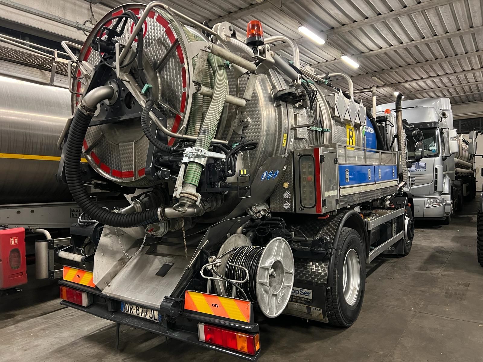 - Motrice spurgo a 4 assi (14 tonnellate) – Macchina con attrezzatura in combinata composta da: cisterna per l'aspirazione e il trasporto di liquidi, fanghi in ADR, rifiuti pericolosi; attrezzatura ad alta pressione con naspo posteriore per disostruzioni delle grandi condotte fognarie.